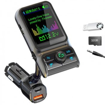 Car Bluetooth 5.3 FM Transmitter with Dual USB Type-C Fast Charger & Handsfree