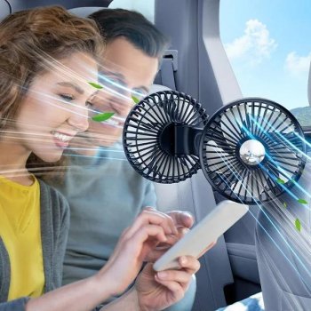 Adjustable Dual-Head USB Car Fan with Foldable Bracket for Rear Seat Comfort
